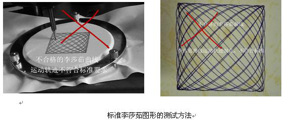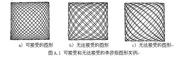 画两条平行线,刚好与李莎茹图形两对侧的曲线最外面相交。再为另外两侧画两条平行线,并确信这些线垂直相交。采用适当的方法,测量每一边精确至 ±0.2mm。检查画的31条线,重要的是检查李莎茹图形的对称性。如果曲线互相重合或间距不均匀(见图A.1),则咨询仪器供应商